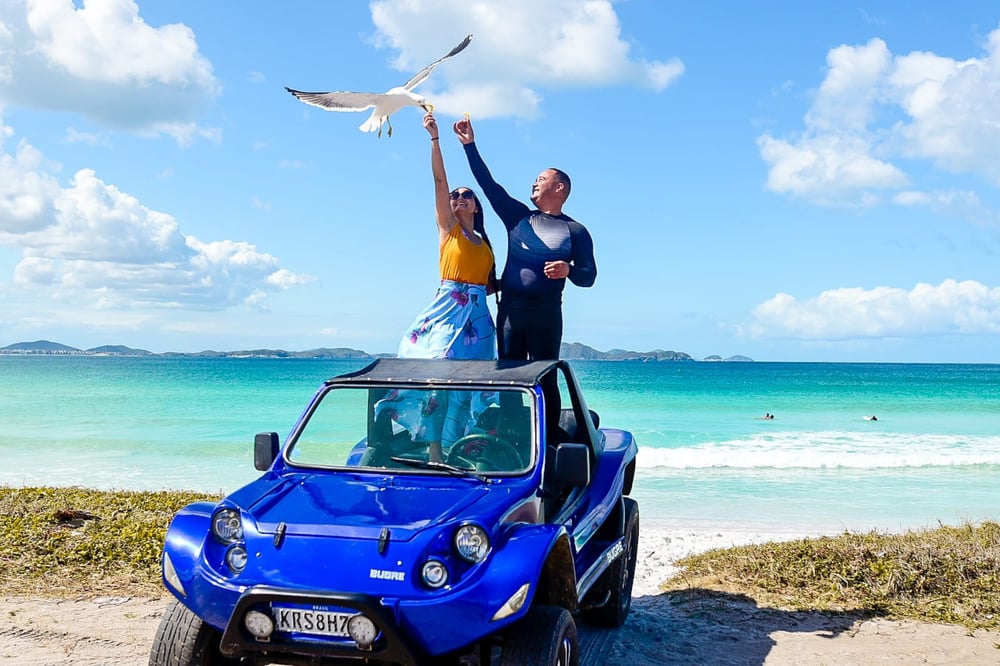 Valor de acordo com a quantidade de passageiros, sendo o mínimo 2 pessoas e o máximo 4 pessoas por bugre.